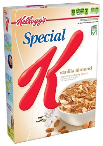 A classic combination of tastes, Special K Vanilla Almond cereal starts the day off right with a feeling of comfort and a delicious crunch that pairs perfectly with milk. A good source of whole grains, the cereal blends rice and whole-grain wheat flakes with roasted almond pieces and sweetens the mix with vanilla and honey flavors. Fortified with iron and loaded with fiber, Special K Vanilla Almond is a perfect beginning point for the morning or pick-me-up snack for the afternoon when sprinkled on yogurt or apple slices.