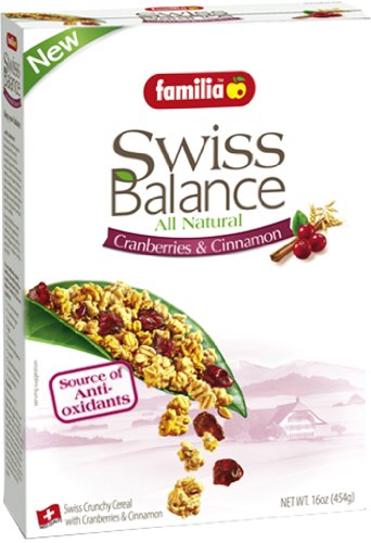 Familia Swiss Balance Cranberry and Cinnamon Cereal is a crunchy cereal with a dash of cinnamon accented with cranberries. For almost 50 years, Familia has been developing both traditional and innovative natural cereals. Imported from Switzerland, known as the birthplace of muesli, Familia offers a variety of nutrient-rich cereals that everyone can enjoy. Familia also supports farmers who believe in preserving the environment.
