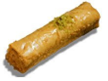Flaky fillo dough rolled around crushed cashews and topped with a sprinkle of ground pistachio.